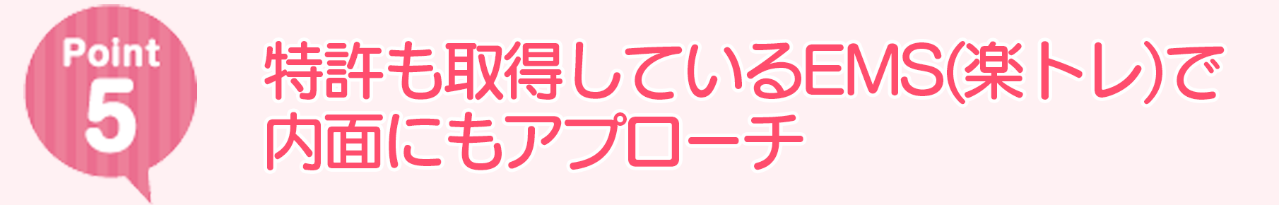 またインナーマッスル強化は楽トレという機械を使用します。 この機械は高周波を用いており手の届かないインナーマッスルにアプローチすることができます。