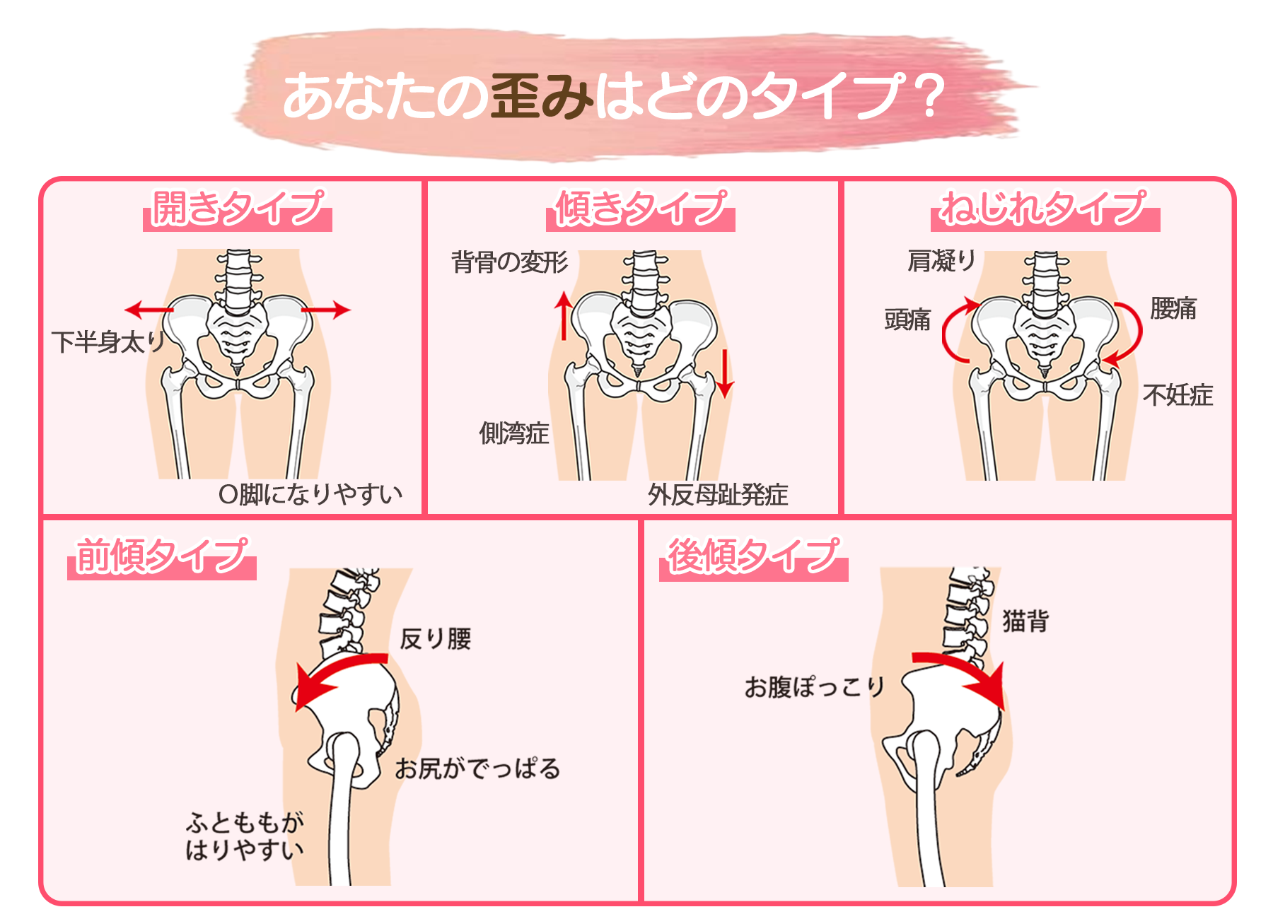 骨盤は出産のために全ての方が開いています。 これは帝王切開の方も同様です。 そのために、産後のケアをしていないと下半身太りの原因や腰痛持ちになりぎっくり腰を繰り返してしまうなどの原因になってしまいます。 ちなみ昔の日本では産後すぐにさらしでぐるぐる巻きにして引き締め、すぐに育児に入っていく流れでしたが、 今日ではさらしを巻くこともせずに、産後ベルトもつけたりつけなかったりの方が多く、動く量も減ってきています。 このために筋力の低下と骨盤の開きにより体型の変化や、痩せにくい身体ができてしまいます。
