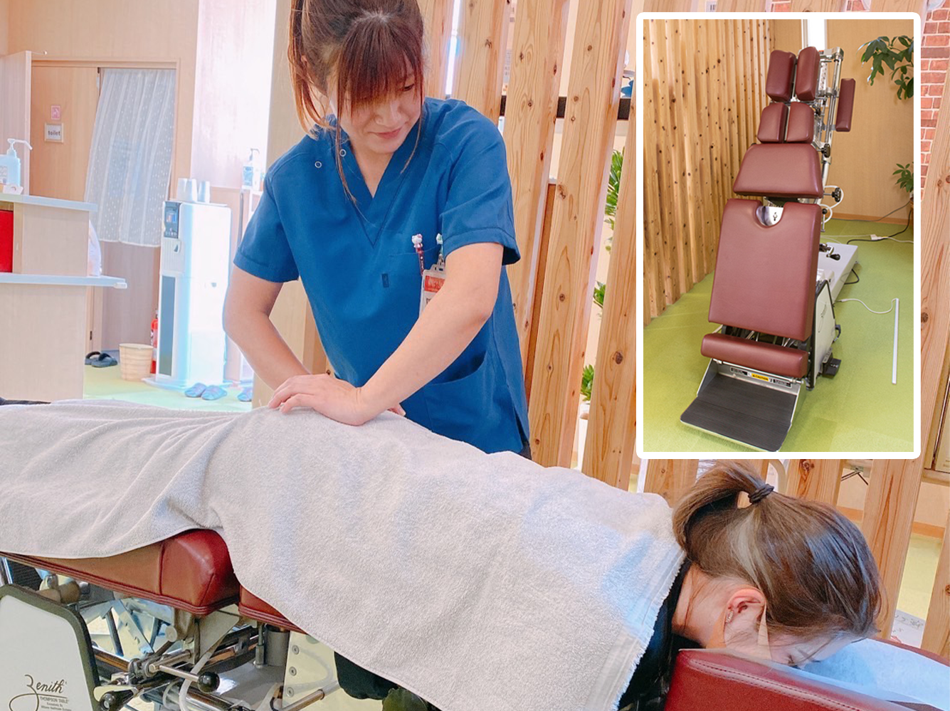 骨盤矯正はトムソンテーブルという機械を使用することによりボキボキせずにお身体ののご負担を最小限に骨盤を引き締めて行きます。